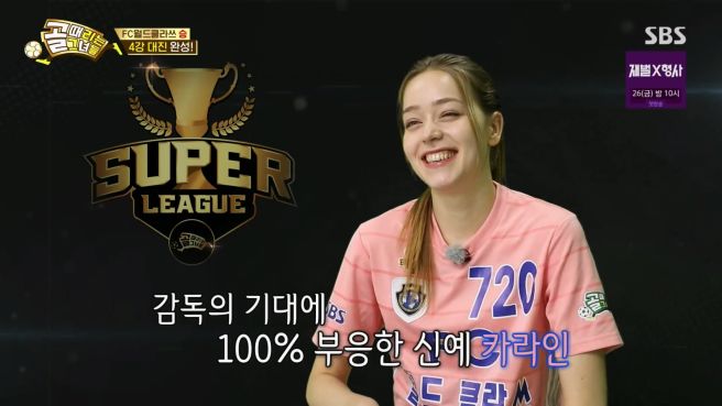 특이사항 : 골때녀에서 가장 큰 키(177cm)를 가지고 있는 카라인은 킥이 강력하고 패스의 정확도가 우수해 팀 동료들에게 정확히 공을 보낼 수 있는 선수이다. 13년의 필드하키 경력을 가지고 있어 축구하는데도 도움이 될 것으로 보인다.
