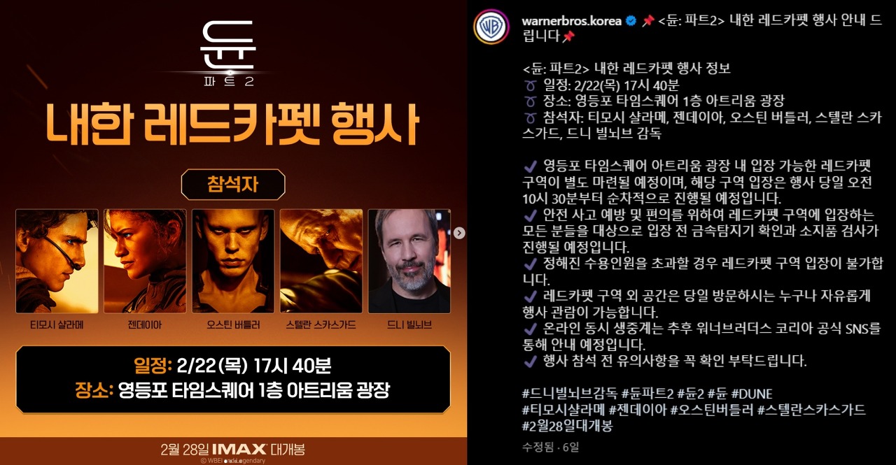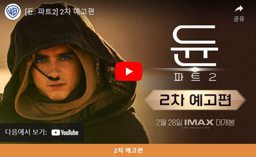 듄 1편의 흥행을 바탕으로 2월 28일 듄 : PART2의 개봉은 또 한 번 영화팬들의 관심을 갖게 되는데 이 또한 전편을 넘어서는 흥행을 거둘지 궁금하다.