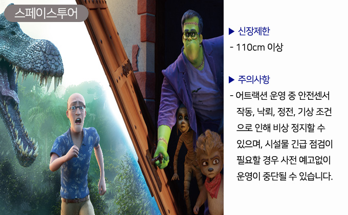 - 어트렉션마다 운영시간이 다르니 앱을 통해 확인 후 이용하세요.