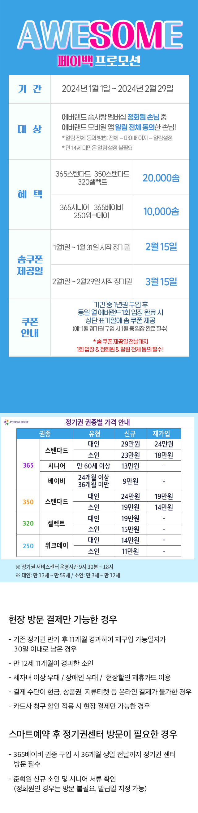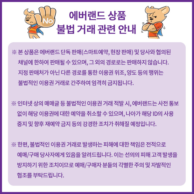 - 에버랜드 자유이용권은 별도로 구매해야 합니다.