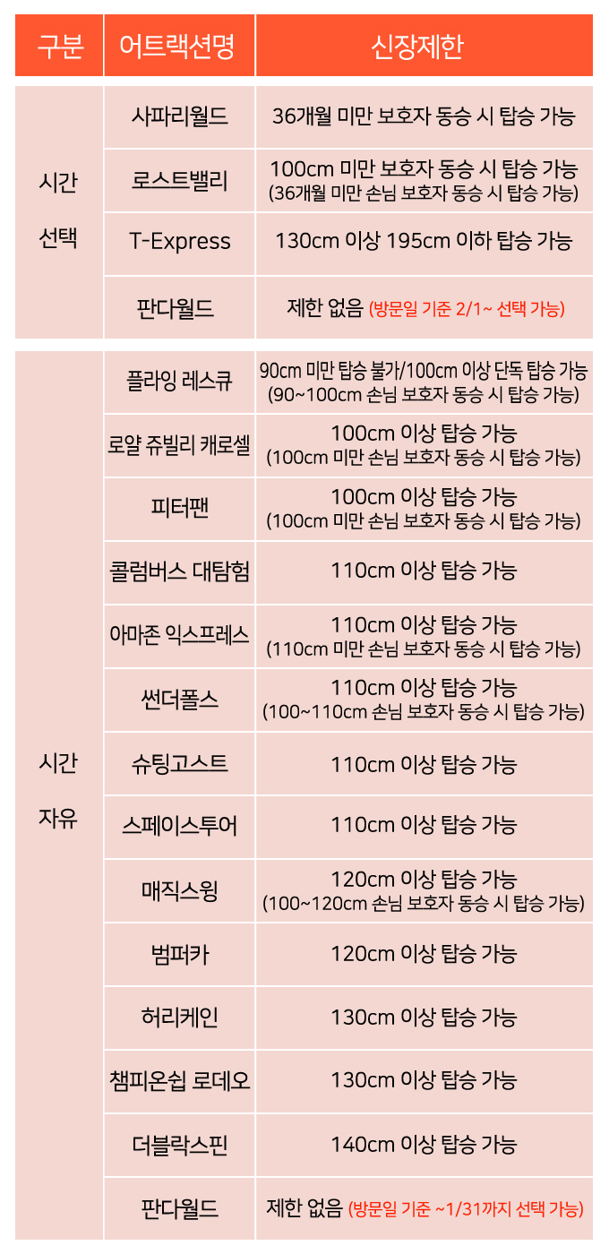 - 36개월 미만 아가들은 보호자 동반 시 무료입장 가능합니다.(사파리, 로스트밸리, 아마존)