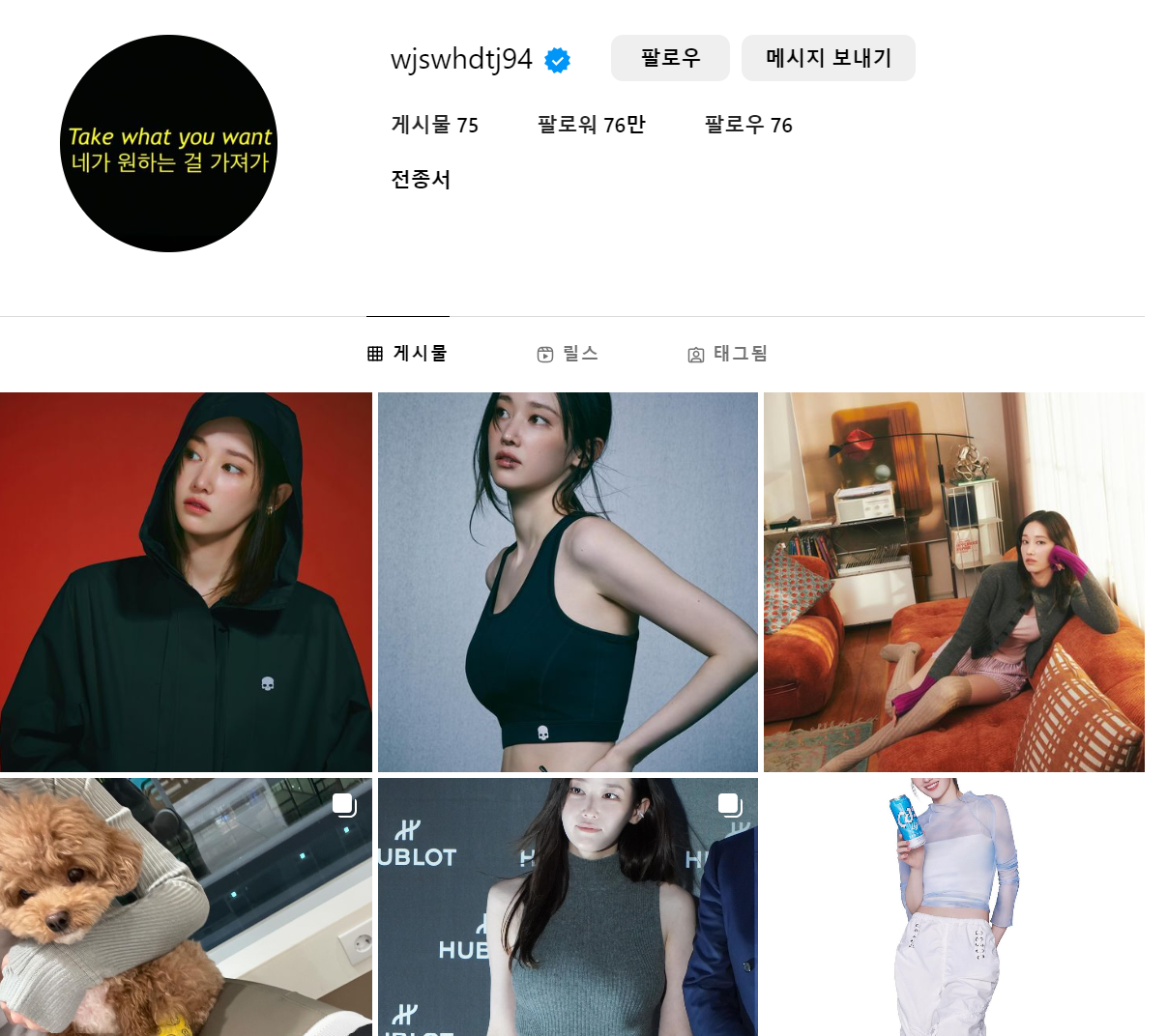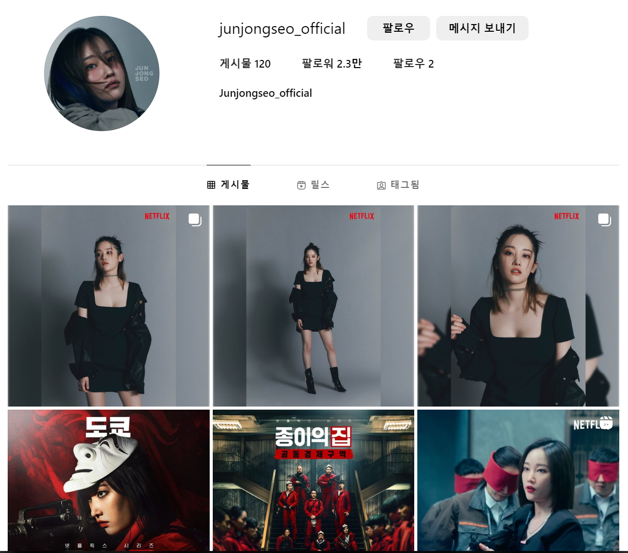 - SNS : 인스타그램 개인 팔로워 76만/ 공식인스타그램 팔로워 2.3만(주로 작품등에 대한 소개가 있다)